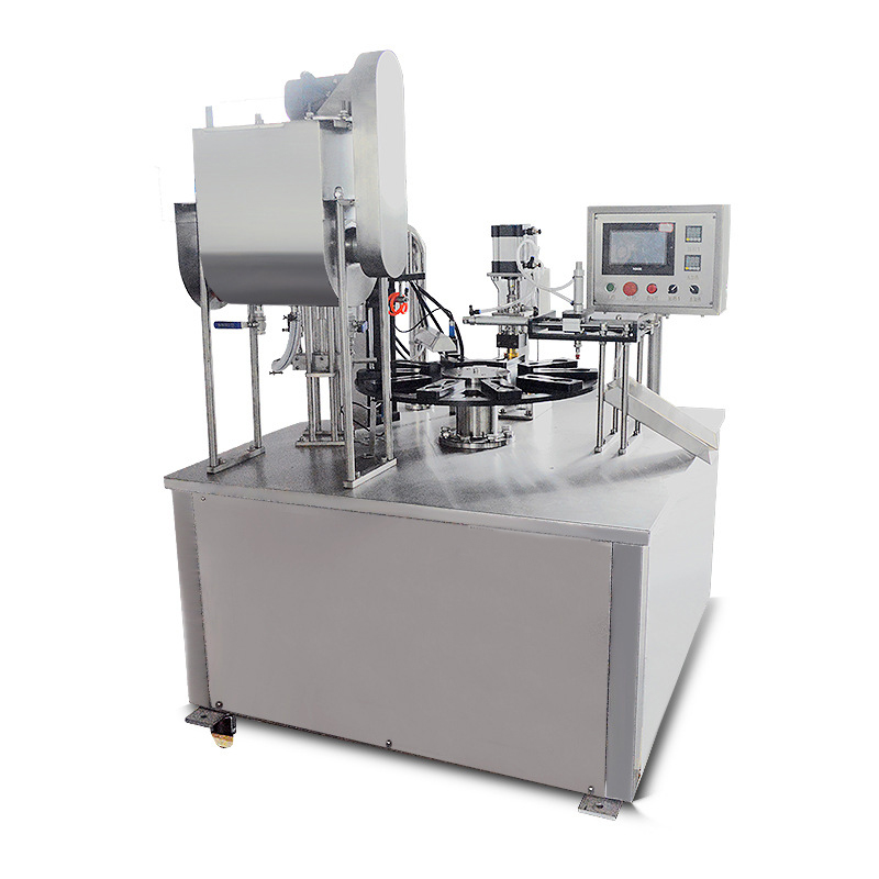 本公司生產(chǎn) 的轉(zhuǎn)盤系列封口機(jī) ,可適用于不 同規(guī)格容器 的灌裝封口 。 同 時(shí)可配置不 同方式 的灌裝類型 ,如 自流式 ,充填式 ,量杯式 ,螺桿式灌裝等 , 以便適用于各種不 同產(chǎn) 品 的灌裝 。轉(zhuǎn)盤-系列封 口 機(jī)可完成對水 ,冰激凌 ,果凍 ,牛奶 ,雪糕 ,牛油 ,果醬 ,八寶粥 ,米 酒 ,奶酪辣椒醬等各種食 品以及 醫(yī)療 ,化工等產(chǎn) 品 的灌裝并使用相應(yīng)材質(zhì) 的復(fù)合 膜加 以封口。