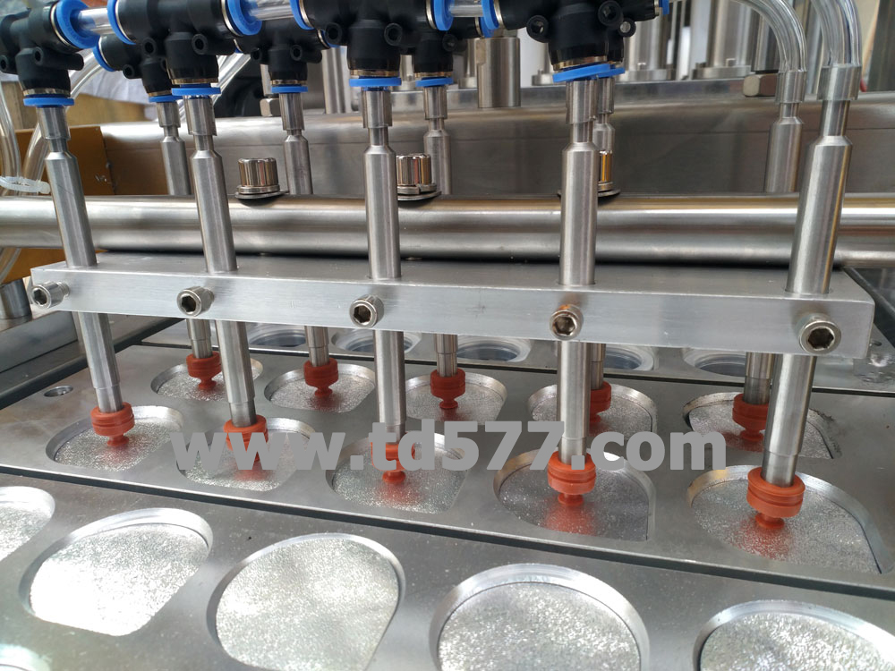 本機(jī)器適用于塑料杯的自動(dòng)灌裝封口。用于果凍,布丁等包裝。